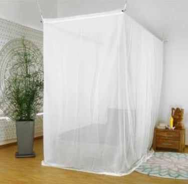 Attach the canopy to available supports. The fabric must extend to the floor.